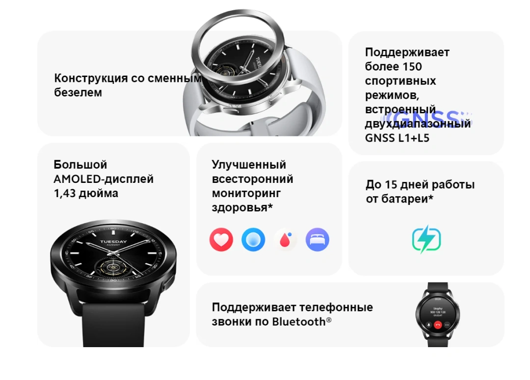 Просто отвечайте на входящие вызовы или отклоняйте их одним нажатием на часы, когда вам неудобно доставать телефон, благодаря поддержке телефонных звонков по Bluetooth® на Xiaomi Watch S3.
