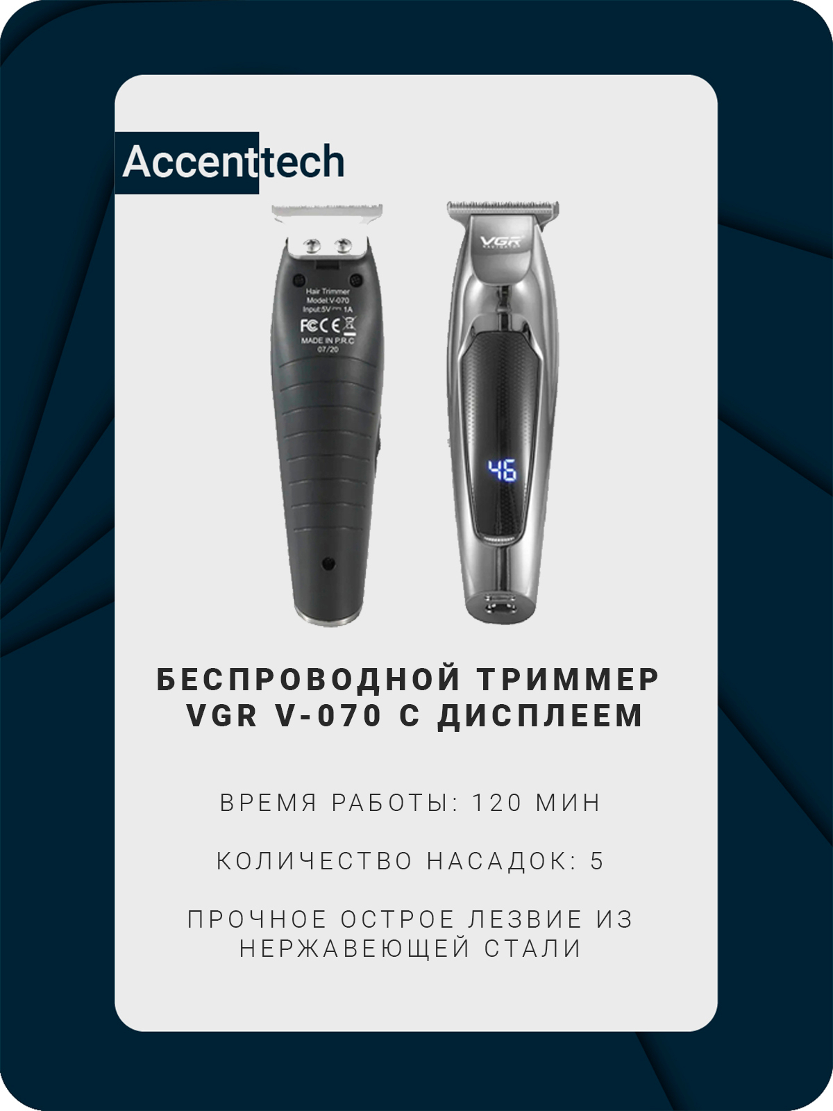 У данного триммера VGR V-070 очень красивый дизайн, выполненный в современном стиле, поэтому он идеально подходит как подарок для ваших близких и друзей. А именно его можно подарить вашему мужу, чтобы он был самый красивый, или вашему брату, чтобы он начал наконец-то следить за собой. Также данную модель VGR V-070 можно подарить отцу, который благодаря вашему подарку будет выглядеть на несколько лет моложе, тем самым вы доставите ему неописуемую радость и удовольствие.