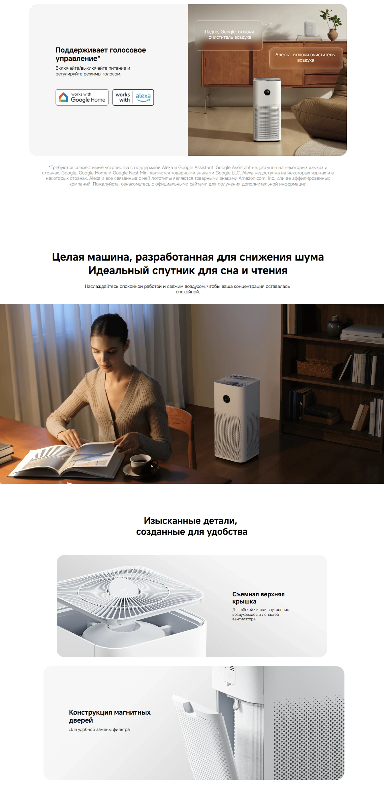 Xiaomi Home ilovasi orqali aqlli boshqaruv imkoniyati mavjud: havo sifatini kuzatish, masofadan yoqish/o‘chirish, jadval sozlash va filtr holatini tekshirish mumkin. Qurilma Google Assistant va Alexa orqali ovozli boshqaruvni ham qo‘llab-quvvatlaydi (mos qurilmalar talab etiladi).