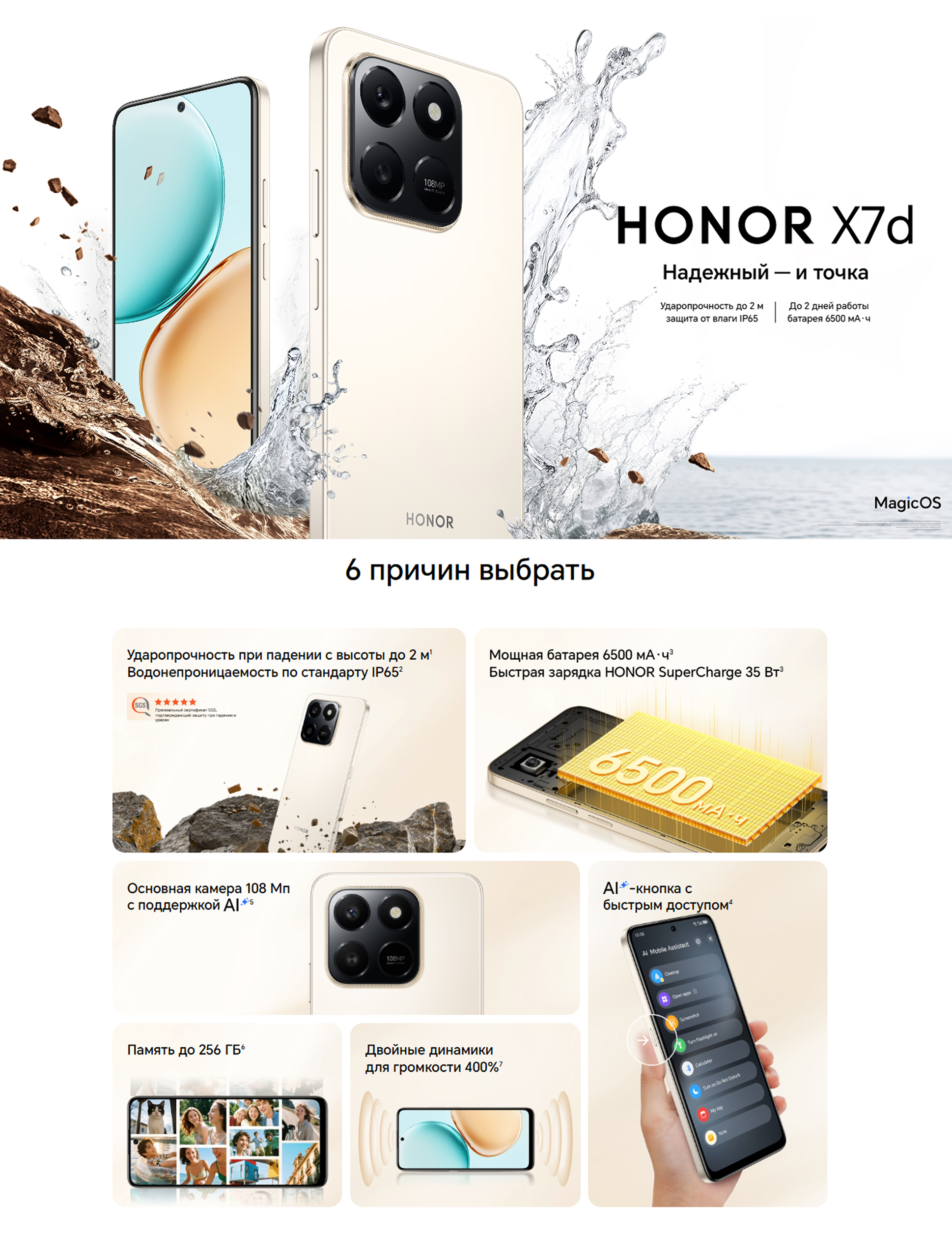 Honor X7d — bu oddiy smartfon emas, balki kundalik hayotingizdagi ishonchli hamroh. Katta batareya, zamonaviy dizayn va keng xotira imkoniyatlari bilan u sizni hech qachon yarim yo‘lda qoldirmaydi.