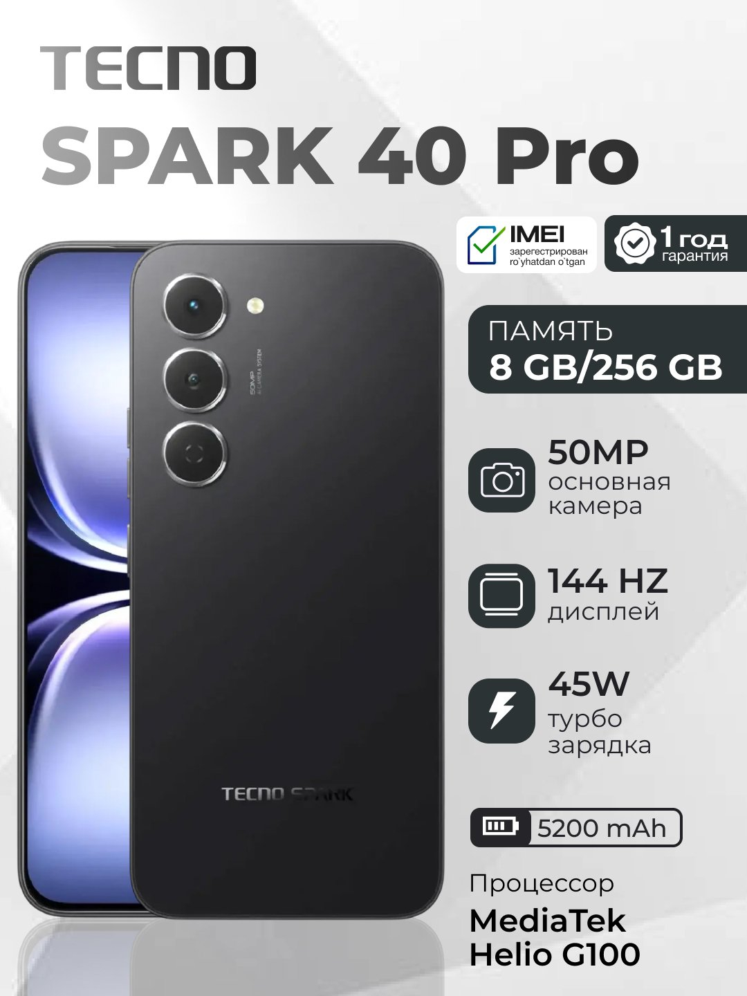 Смартфон Tecno Spark 40 Pro 8/256 ГБ, Ink Black